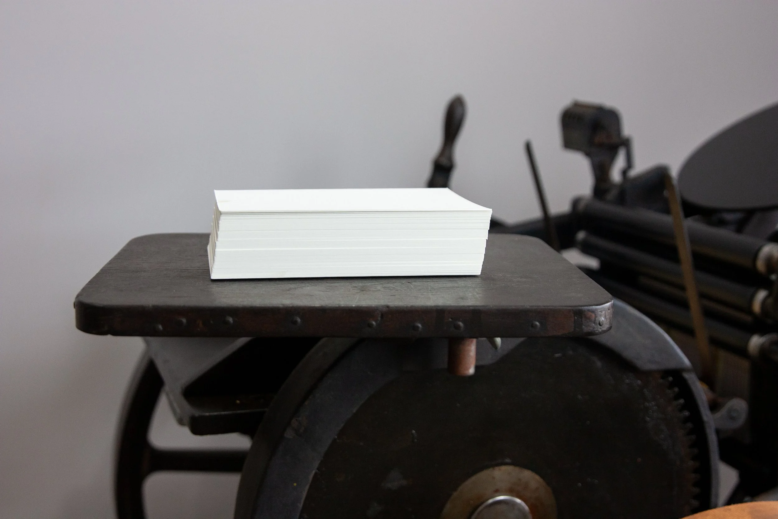 I print on an antique Chandler & Price new style platen letterpress. Made of cast iron, it weighs over 1500 pounds.